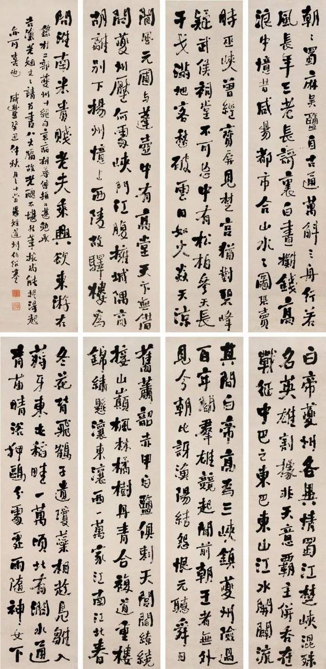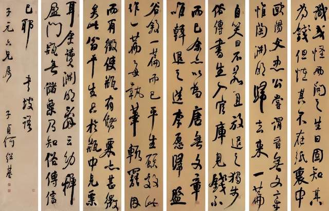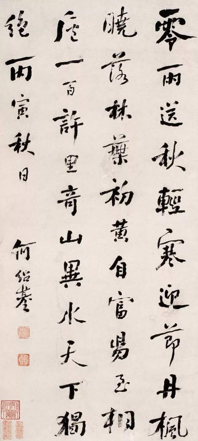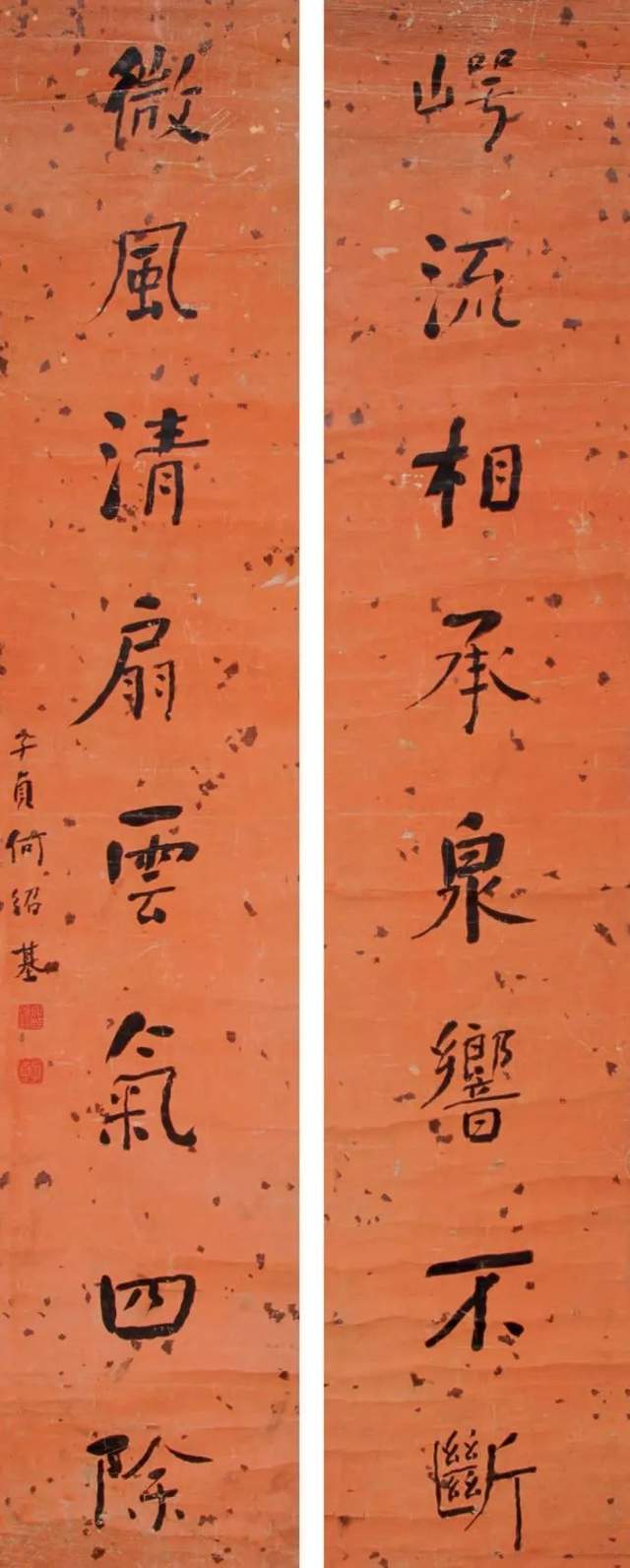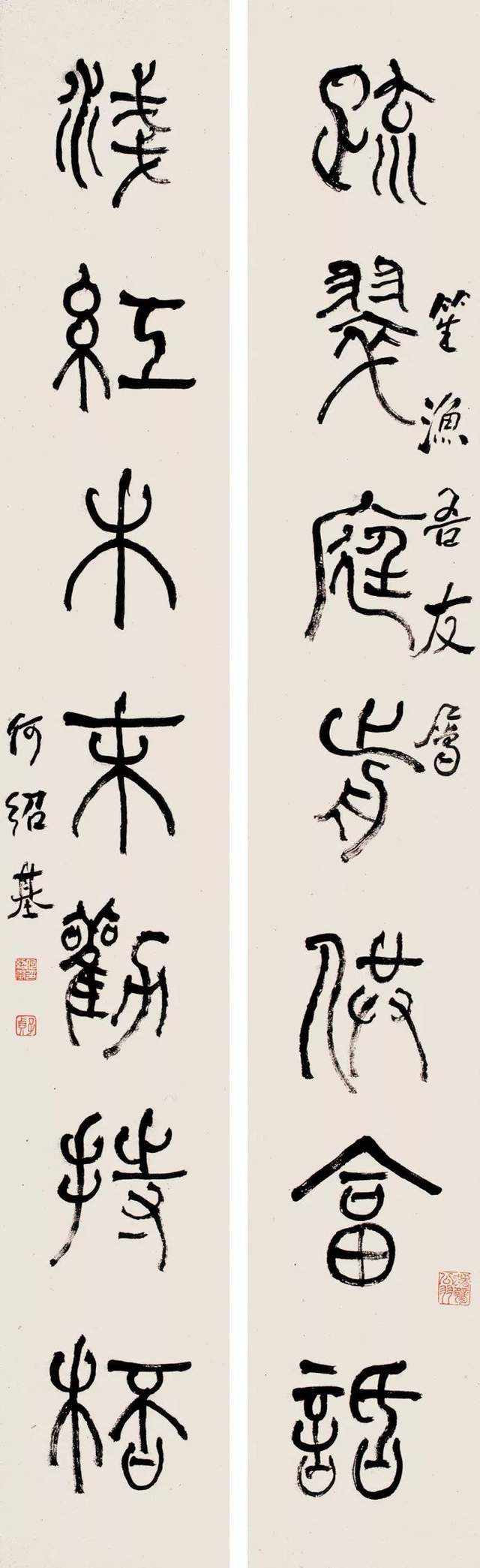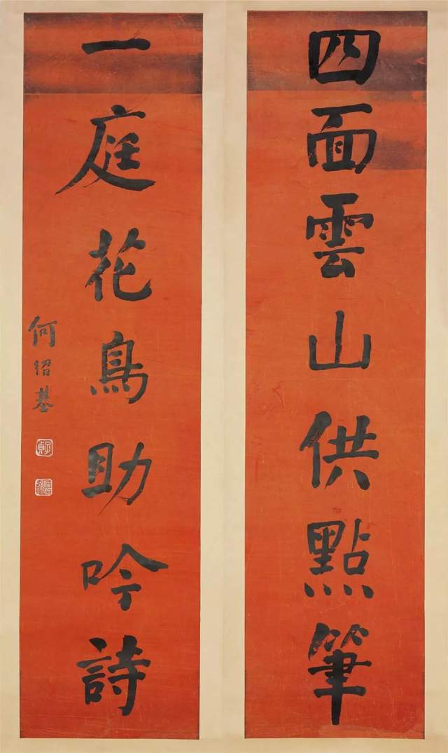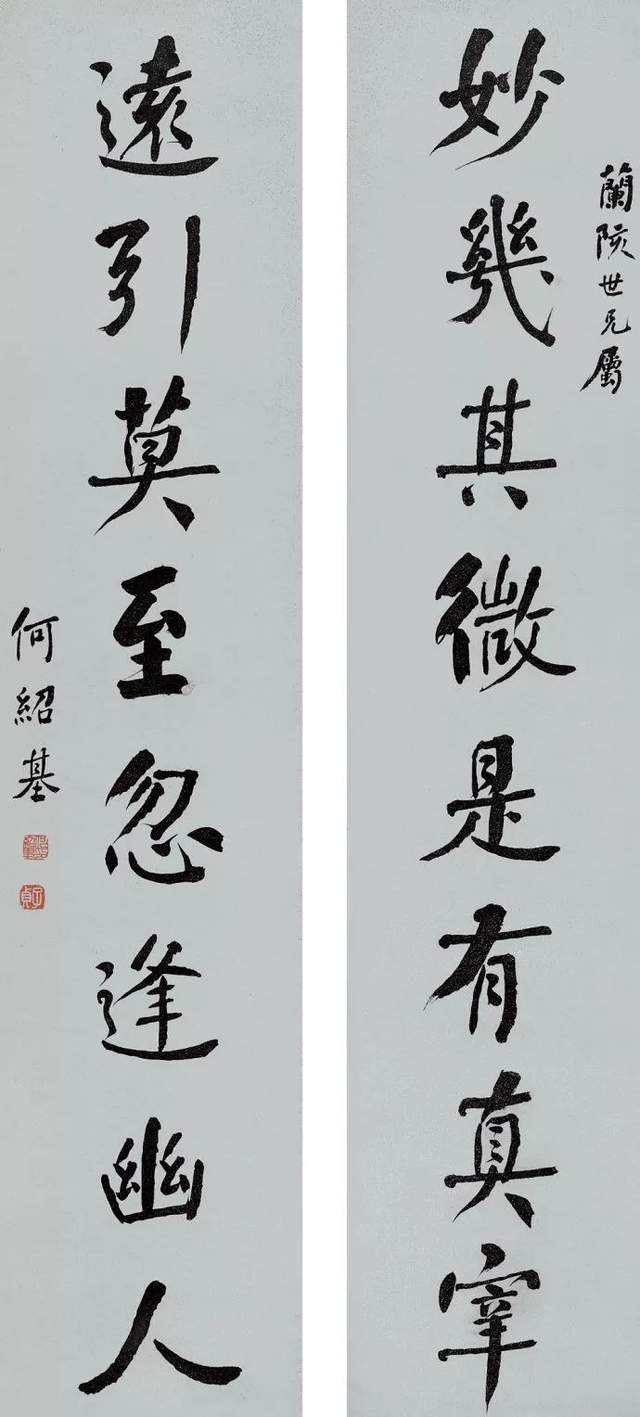 何绍基书法,早年秀润畅达,徘徊于颜真卿、李邕、王羲之和北朝碑刻之间,有一种清刚之气;中年渐趋老成,笔意纵逸超迈,时有颤笔,醇厚有味;晚年何绍基的书法已臻炉火纯青。