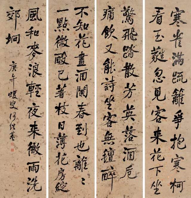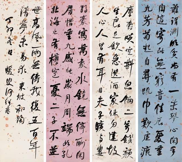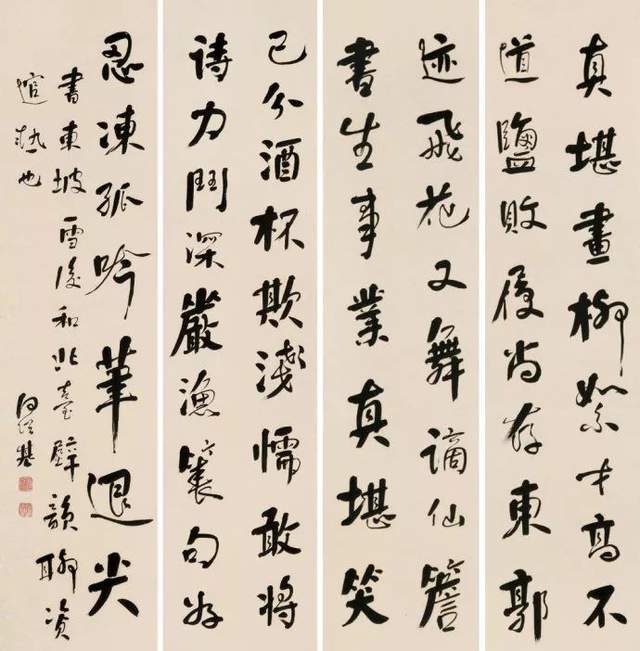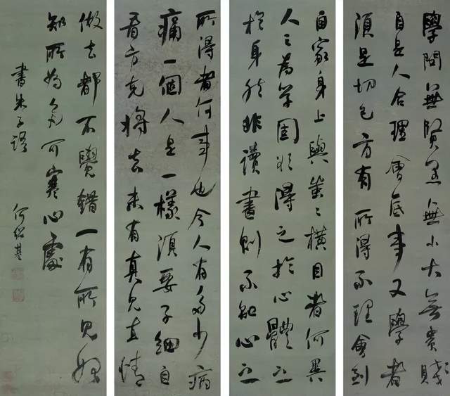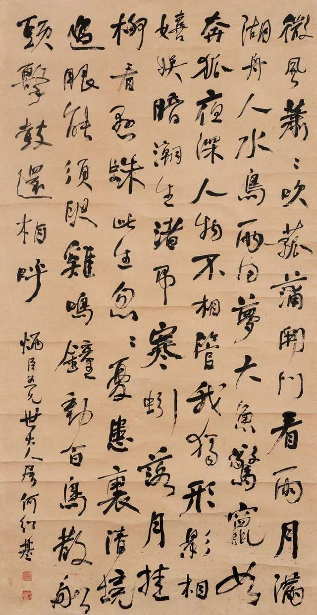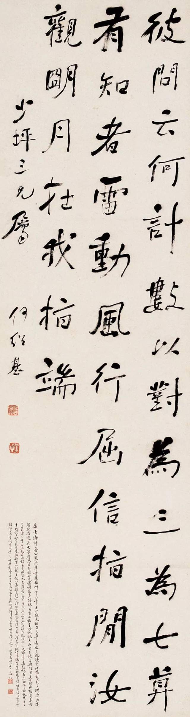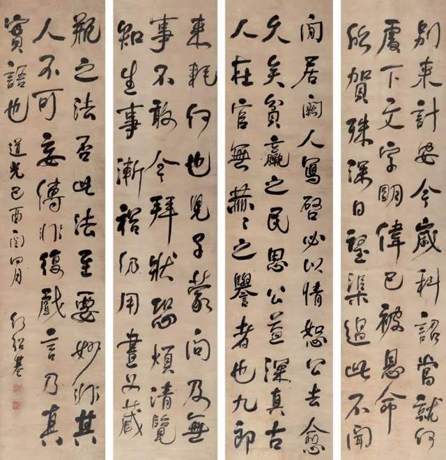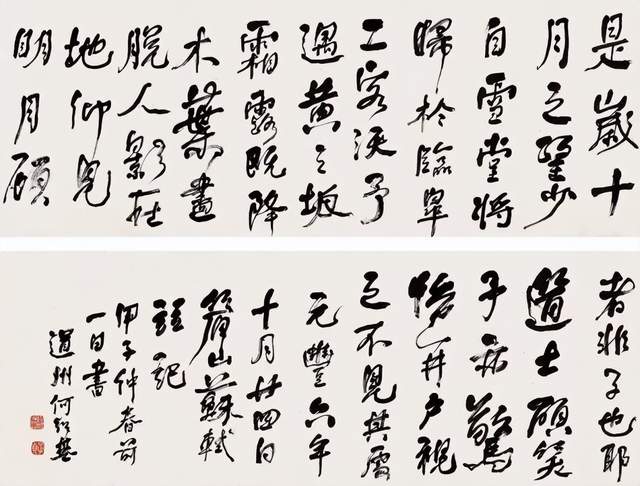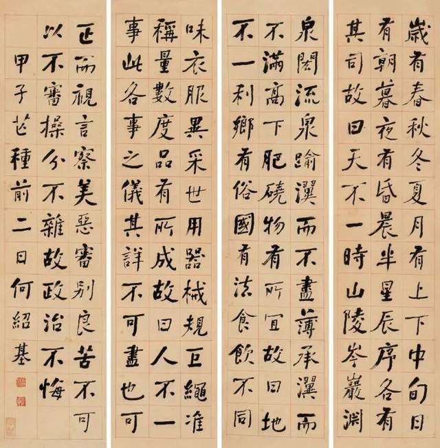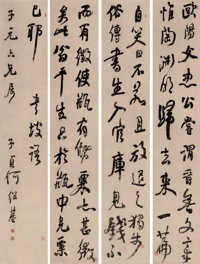 何绍基书法,早年秀润畅达,徘徊于颜真卿、李邕、王羲之和北朝碑刻之间,有一种清刚之气;中年渐趋老成,笔意纵逸超迈,时有颤笔,醇厚有味;晚年何绍基的书法已臻炉火纯青。