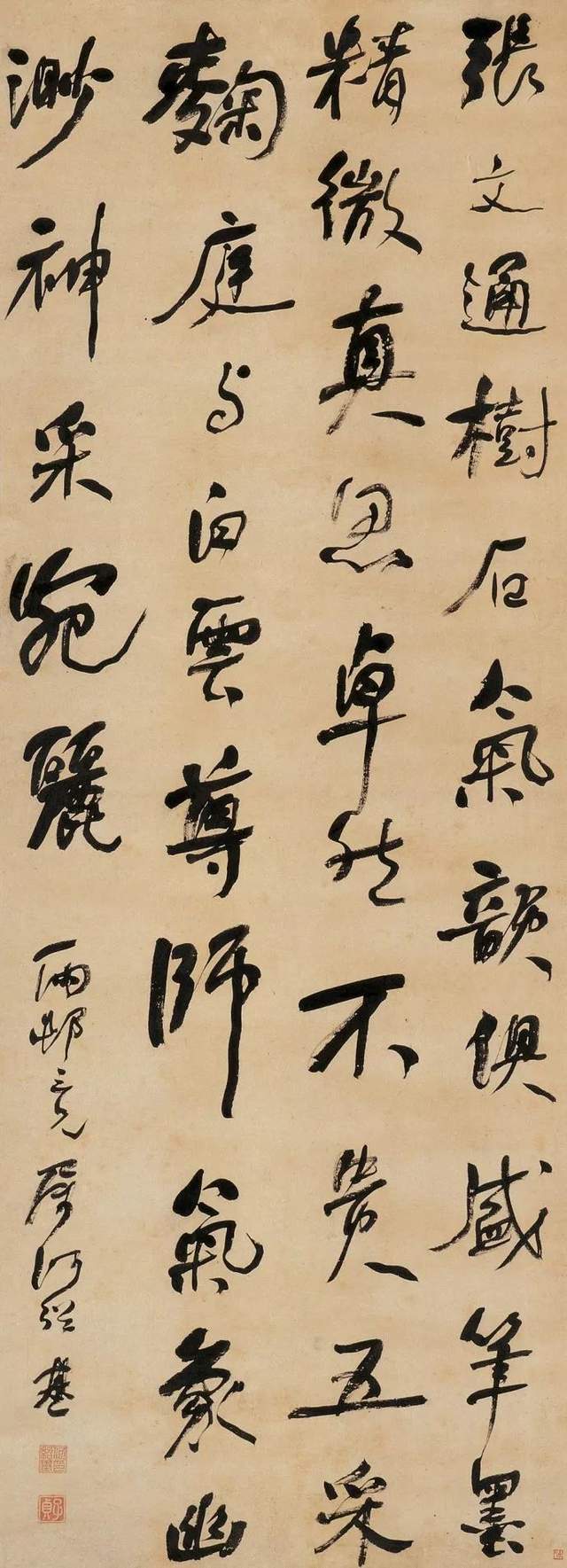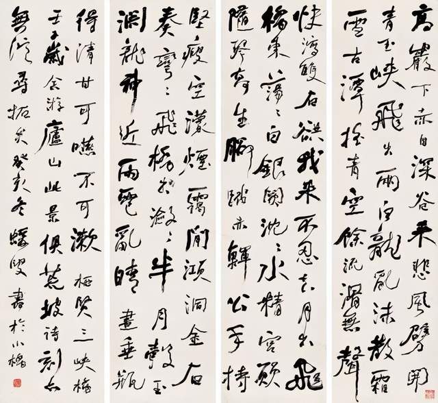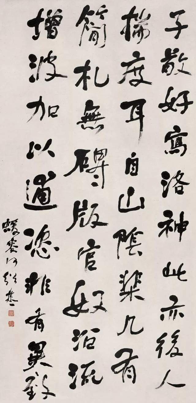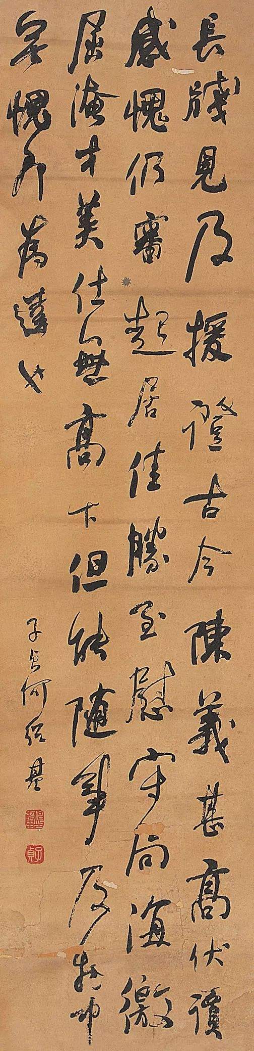 何绍基(1799-1873),晚清诗人、画家、书法家。何绍基的书法成就很高。各体书熔铸古人,自成一家。草书尤为擅长。何绍基的楷书取颜字结体的宽博而无疏阔之气,同时还掺入了北朝碑刻以及欧阳询、欧阳通书法险峻茂密的特点,还有《张黑女墓志》和《道因碑》的神气,从而使他的书法不同凡响。何绍基的小楷兼取晋代书法传统,笔意含蕴,行草书融篆、隶于一炉,骏发雄强,独具面貌。