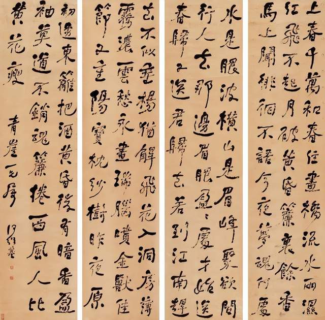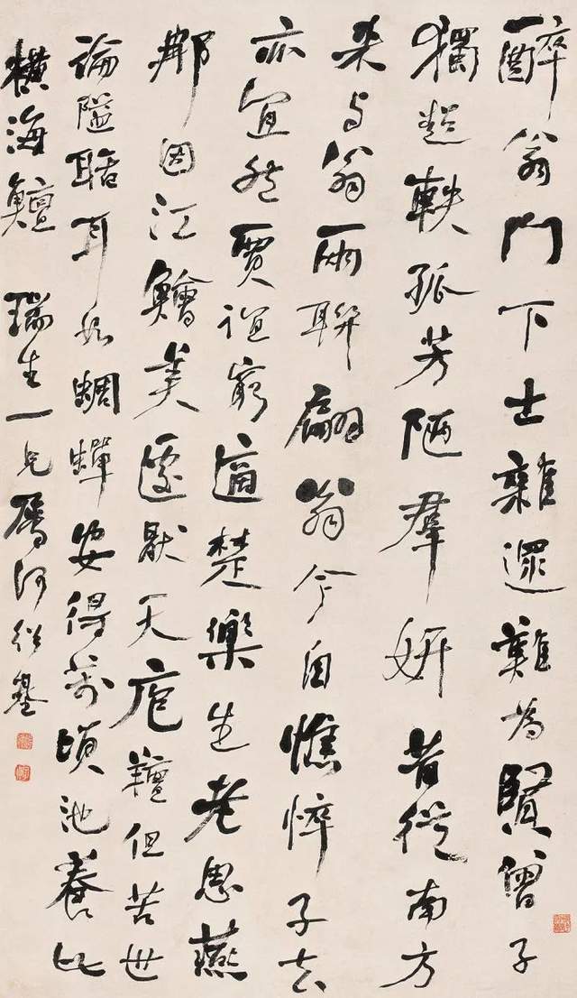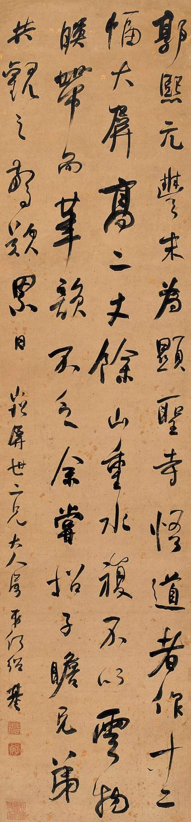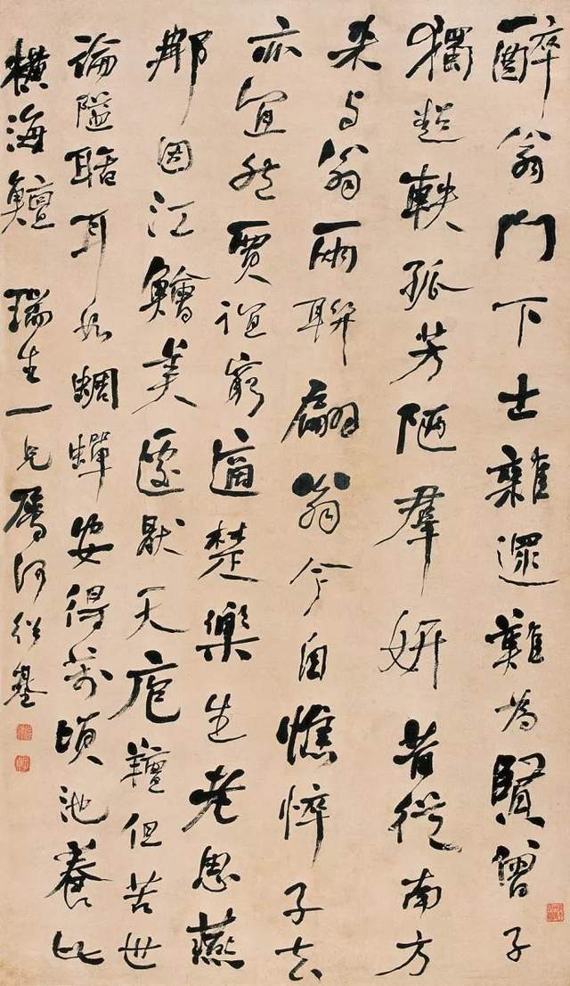 何绍基(1799-1873),晚清诗人、画家、书法家。何绍基的书法成就很高。各体书熔铸古人,自成一家。草书尤为擅长。何绍基的楷书取颜字结体的宽博而无疏阔之气,同时还掺入了北朝碑刻以及欧阳询、欧阳通书法险峻茂密的特点,还有《张黑女墓志》和《道因碑》的神气,从而使他的书法不同凡响。何绍基的小楷兼取晋代书法传统,笔意含蕴,行草书融篆、隶于一炉,骏发雄强,独具面貌。