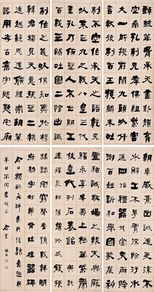 后致力分隶,汉魏名刻,无不深研熟密闭,临摹多至百本。