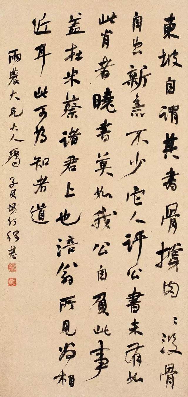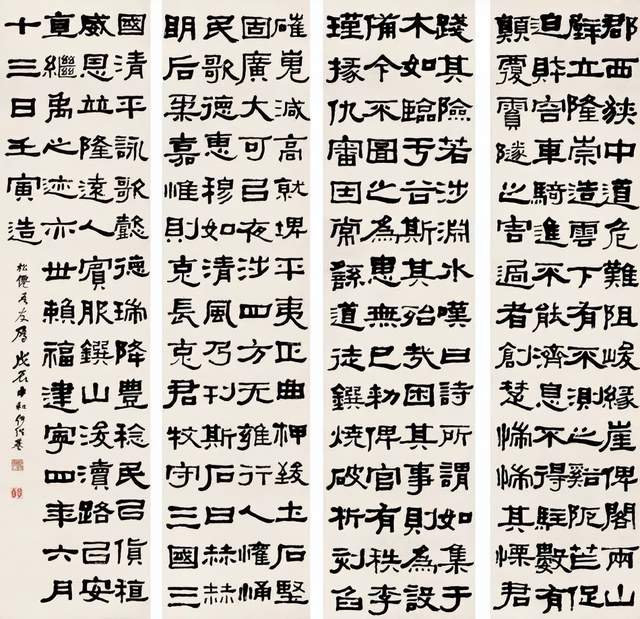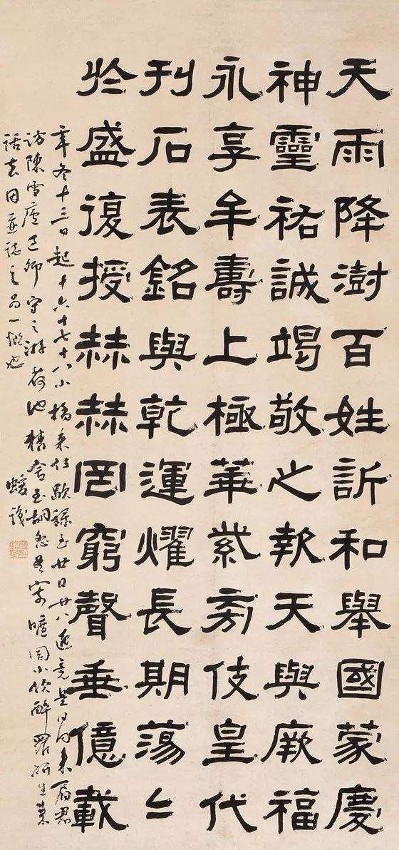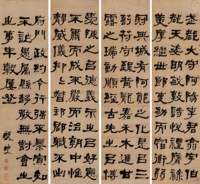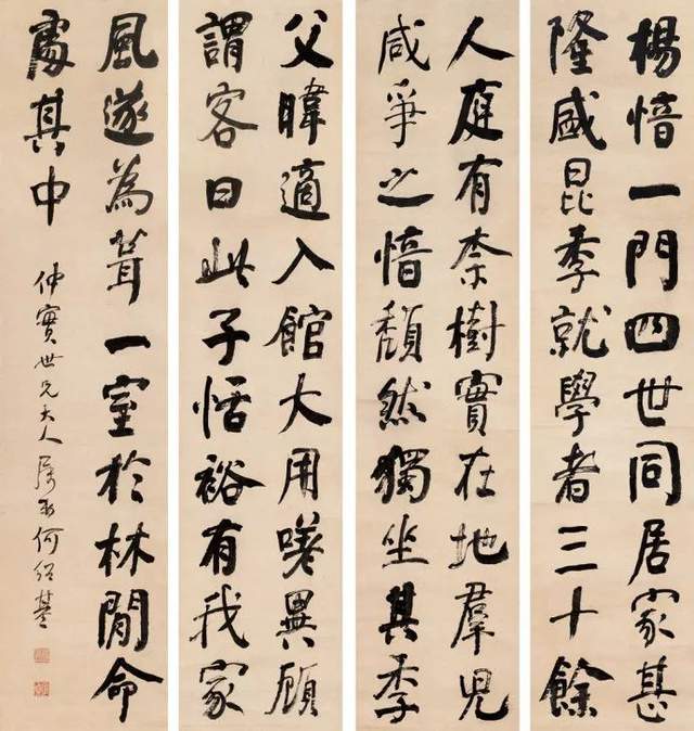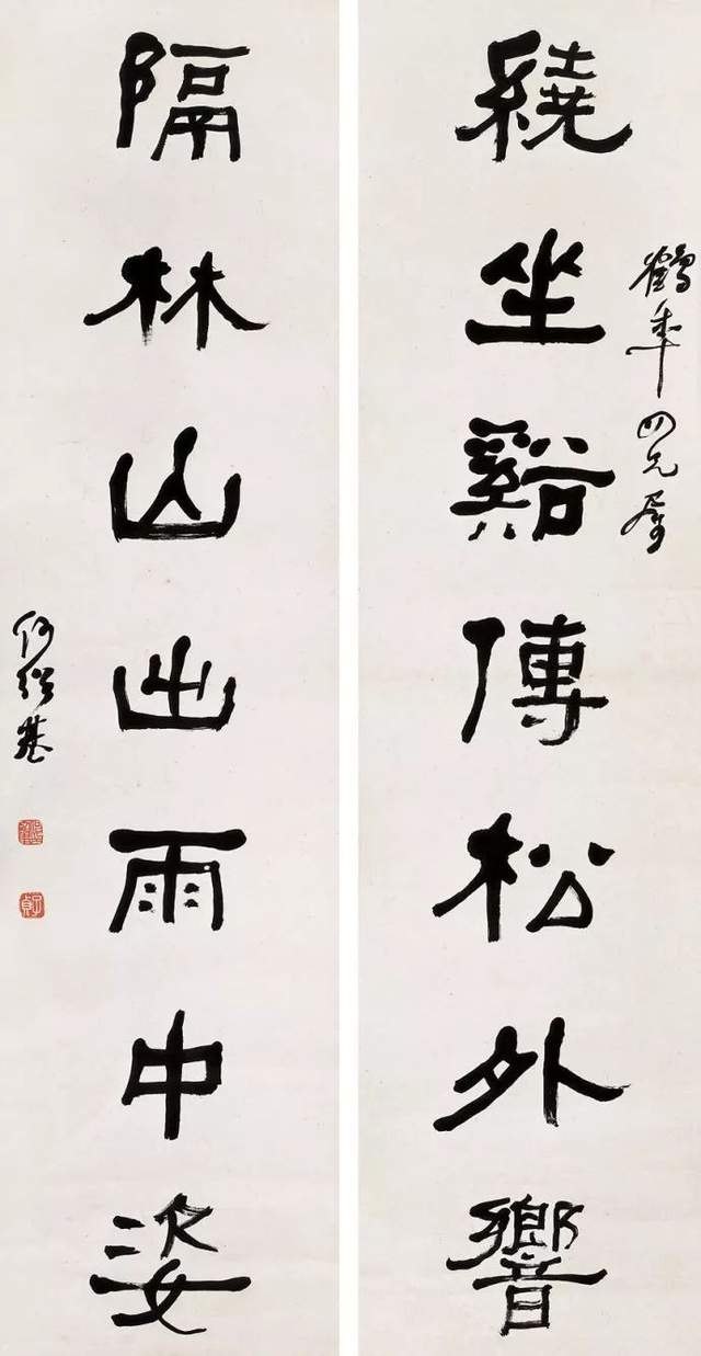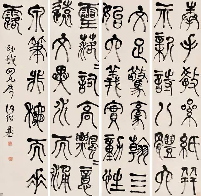他自己说:“余学书四十余年,溯源篆分。楷法则由北朝求篆分入真楷之绪。”何绍基早年由颜真卿,欧阳通入手,上追秦汉篆隶。