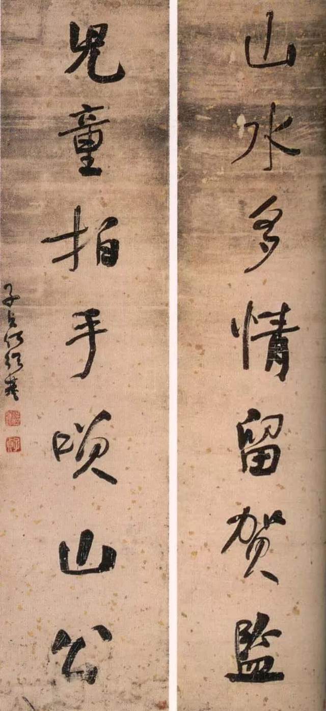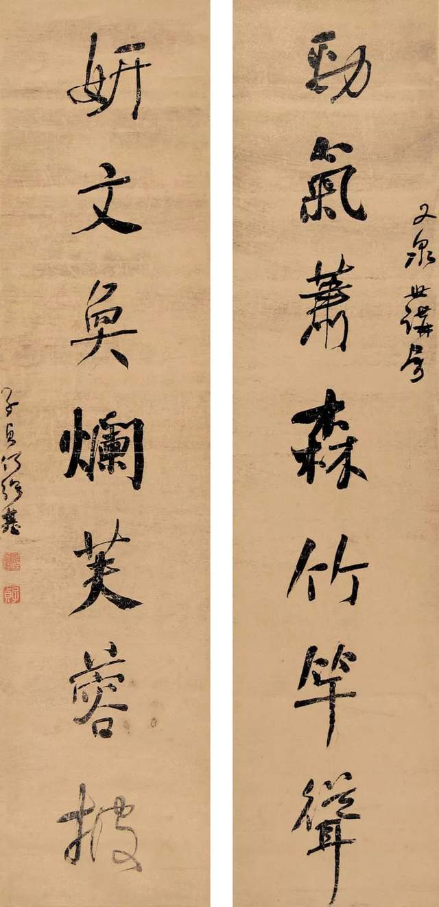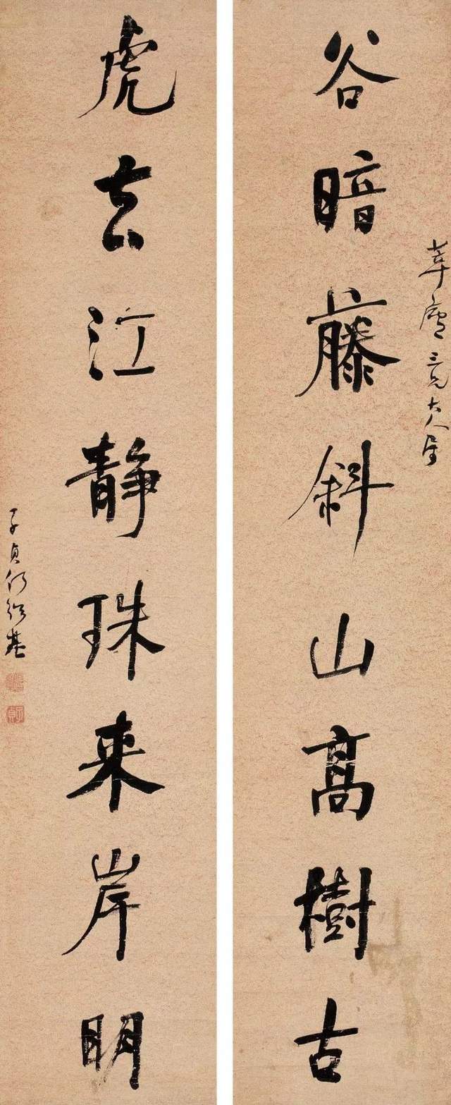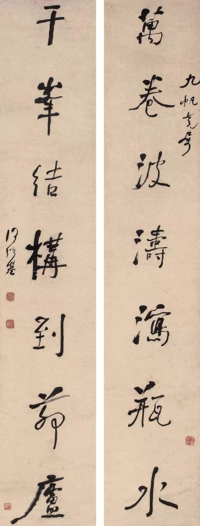 初习颜,中年博习南北朝书,笔法刚健,此期作品传世甚少。