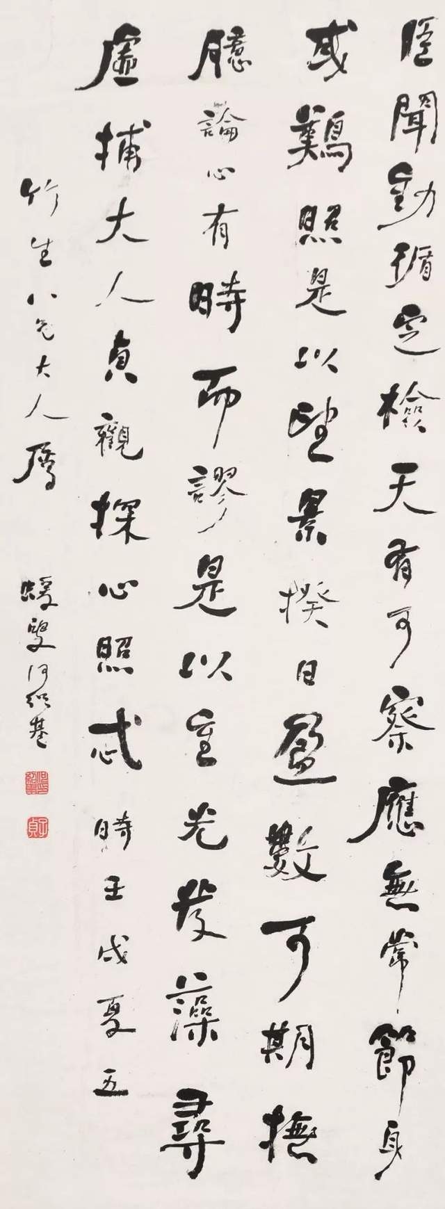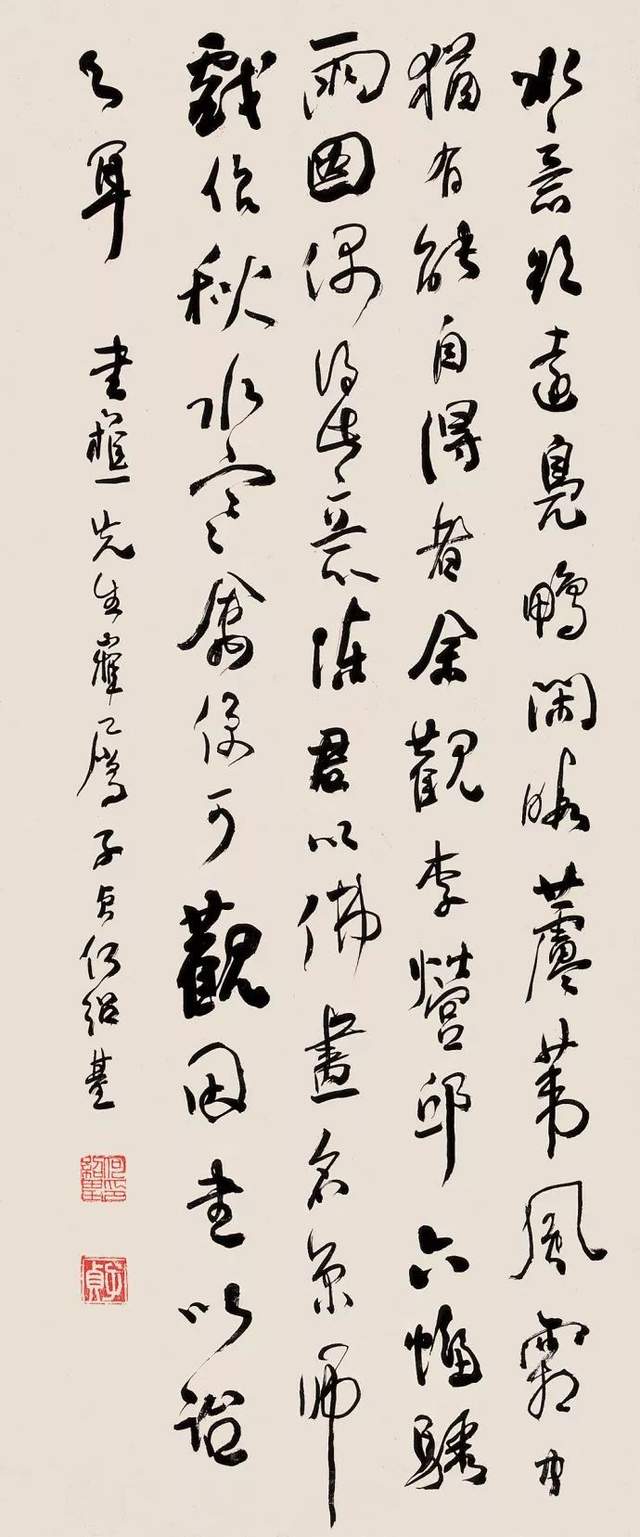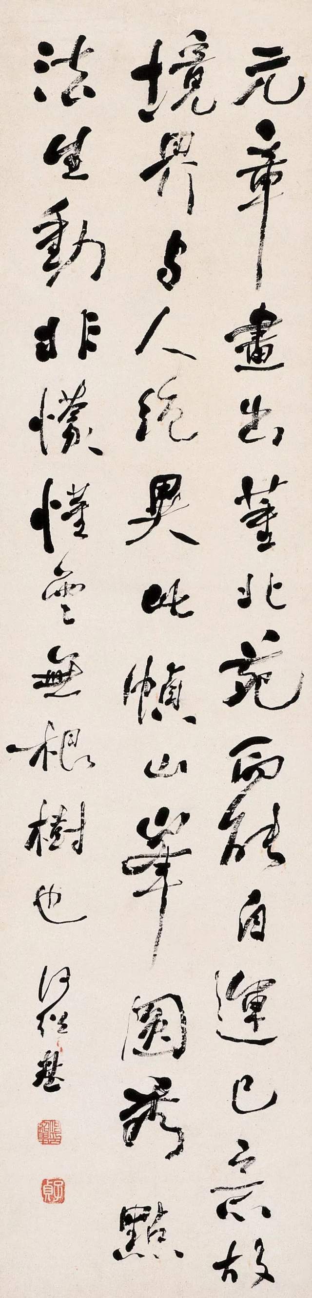 中年潜心北碑,用异于常人的回腕法写出了个性极强的字。