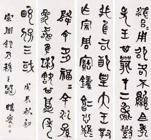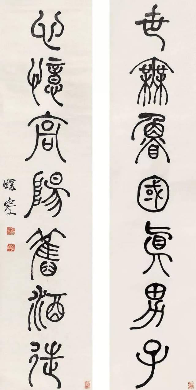 他的篆书,中锋用笔,并能掺入隶笔,而带行草笔势,自成一格。