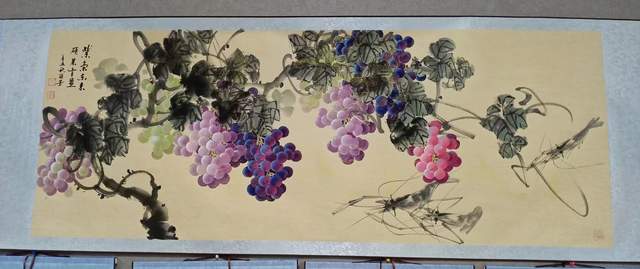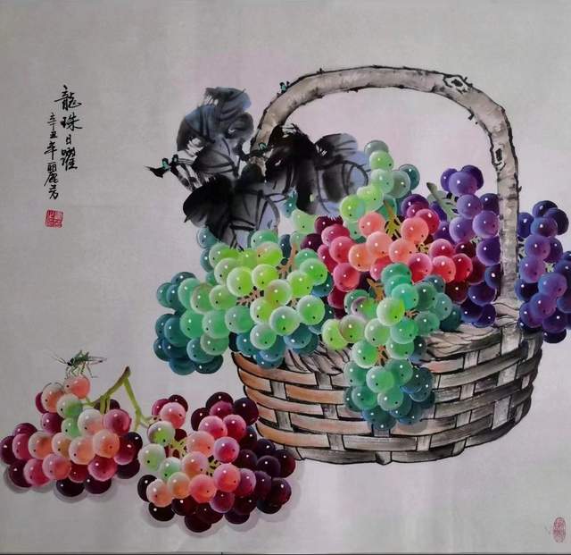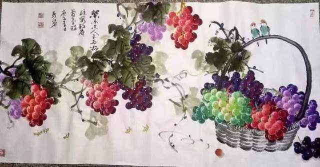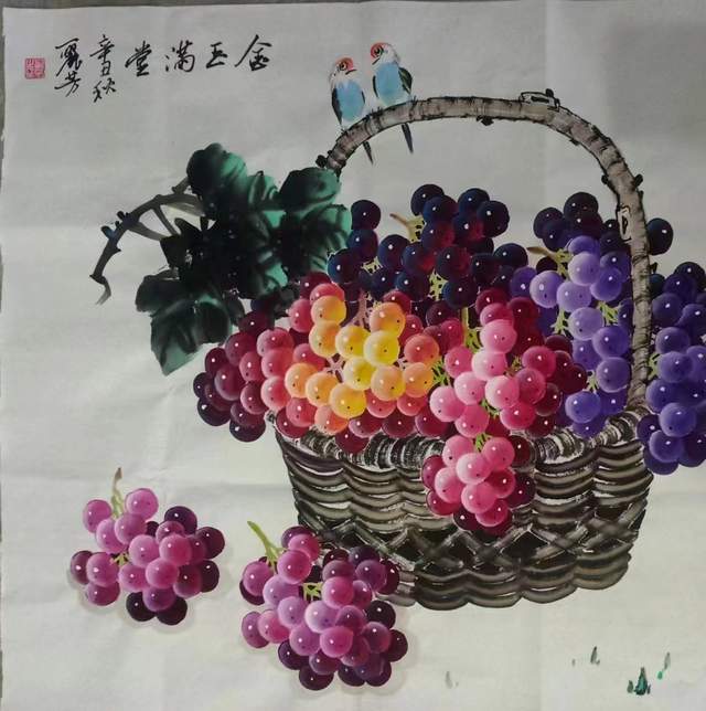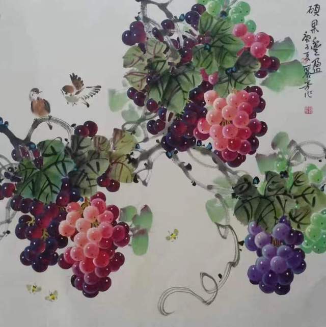 刘丽芳善画葡萄,她笔下的葡萄晶莹剔透、色彩新颖、珠圆玉润、金玉满堂、创意独特、充满生机。欣赏她的葡萄画,构图不刻意追求缜密,但气畅意厚、放纵逸气、笔锋爽健、古雅逸灼,现实的精神与浪漫的情怀在她笔下相融相切,形成独特的个人画风。