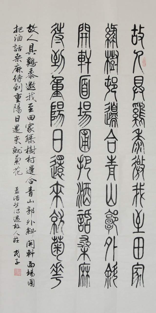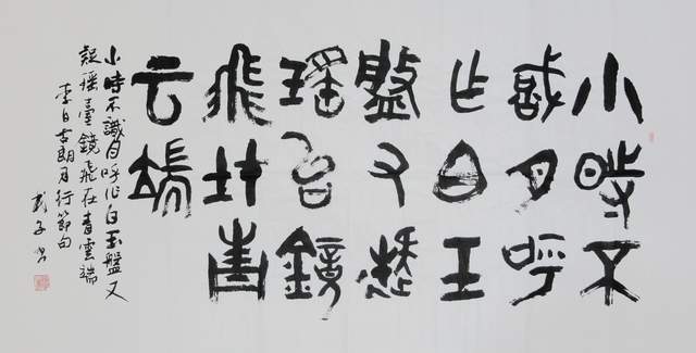 书法更是多年以来孜孜以求的钟爱,也是对于自己的一种磨练。从经典名帖中学习传统的结构、笔法等,以正楷为主,真草隶篆均习,后多以小篆配以行书释文、楷书形成作品。