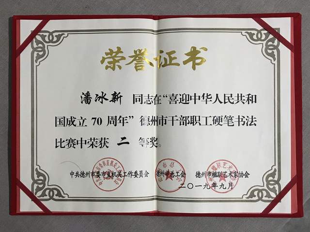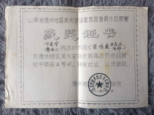 工作期间,油画《新装》曾参加山东省化工系统美术大展赛并获得三等奖,宣传画《一失手成千古恨》参加德州地区美协画展获得优秀奖。