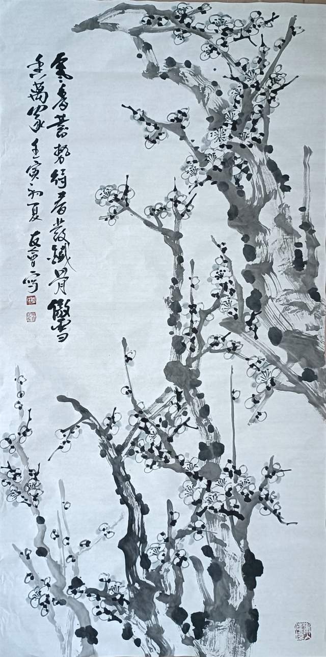 自幼酷爱书画艺术,尤爱画梅。所画梅花繁花累累,缤纷烂漫,花朵丰腴饱满,明亮夺目,满树炽 烈如火,通幅激情四射。画中梅花枝干虬曲,老干疏枝,老辣浑厚,而又不失典雅俏丽。疏影横斜之神态勾勒得淋漓尽致,可谓独树一帜。