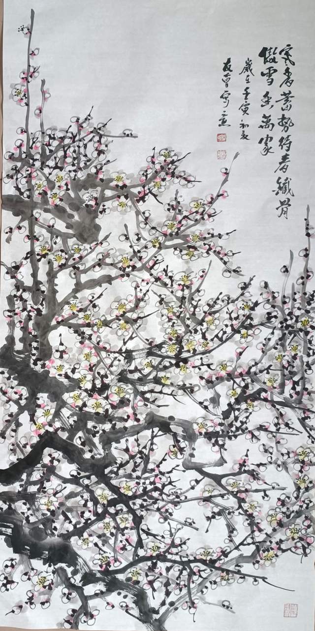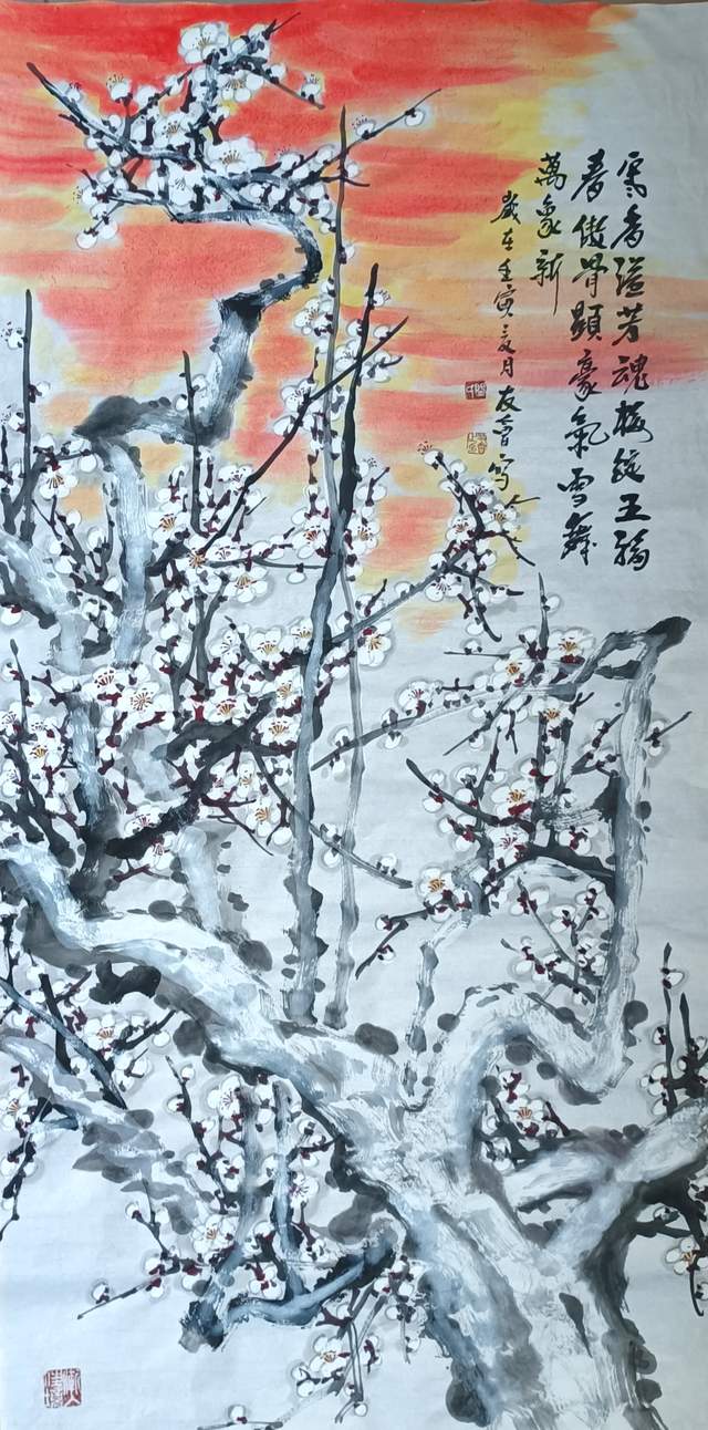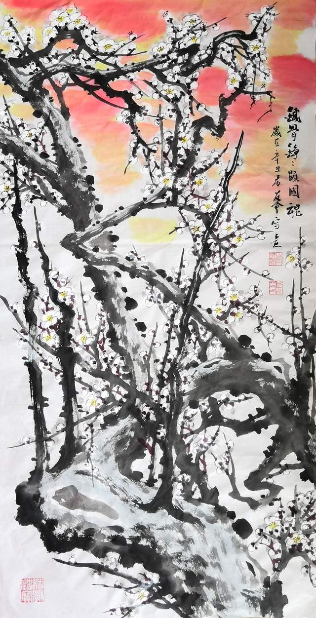 2021年7月,梅花作品《铁骨铮铮显国魂》参加“红色传承映初心——丹青