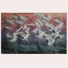 {用途}:家居办公室中堂装饰,收藏送朋友。 表现大兴安岭冬季的来临,亭亭玉立的白桦树和驯鹿人在秋雪中,顽强不屈傲霜斗雪精神,催人奋进不怕艰苦.作品另一面表现富贵吉祥,福寿多禄,财源滚滚.