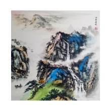 {作品名称}:国画山水《春江秋水柏山流》-楼开敏老师山水画