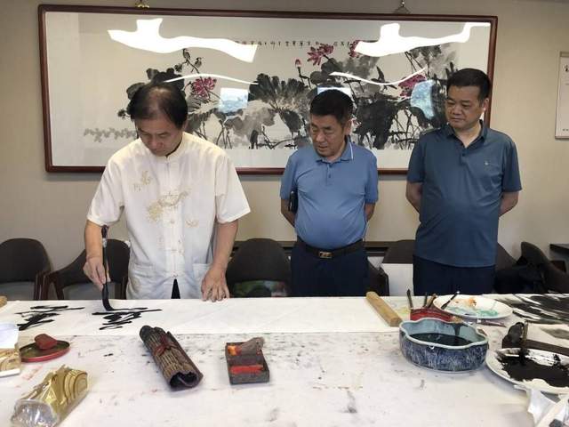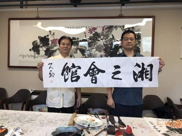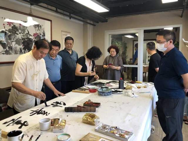 2022.7.8日,在张云老师的带队下,墨缘斋艺术总监山人一村,艺术家祝秀琴、瑞姐、小爱兰花、肖文斌等几位艺术家一起到湖南商会会所做笔会,弘扬传统文化,做传统文化的践行者。