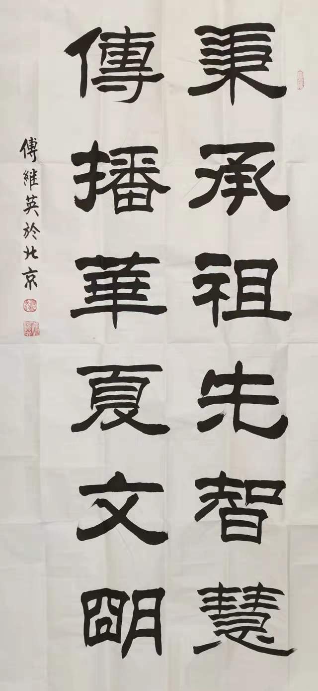 种种设计经营应该是自然和谐的、不留痕迹的、高雅和美是傅继英老师书法作品独有的气质。她的这些作品,结构是紧凑的,表现是恰如其分的。写动易,写静难,而写出禅意则更难。从其系列作品看,这些修为是循序渐进来完成的,是平时废纸千张、朝临暮写做功课的结果。