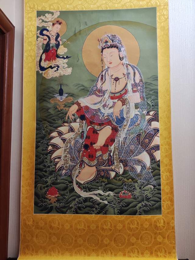 傅继英老师工笔绘画颇见功力。在这些佛画造像艺术中,一笔笔,彰显的是正知正见;一层层,凝结的是顶礼赞叹。所以,画佛造像就是修行,欣赏这些佛像也是修行,以艺术家清净之心绘制诸佛法相,又以诸佛万德法相庄严众生之心,能使人们放下自我,达到净化。